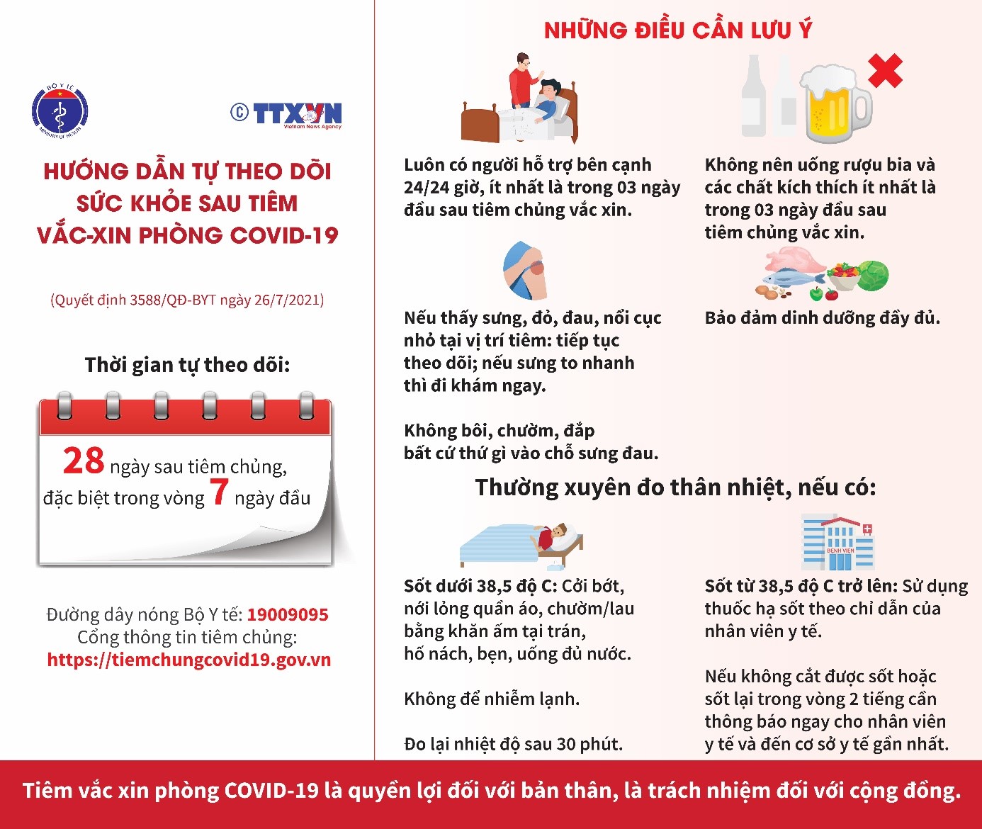 Hướng dẫn tự theo dõi sức khỏe sau tiêm vắc-xin phòng COVID-19