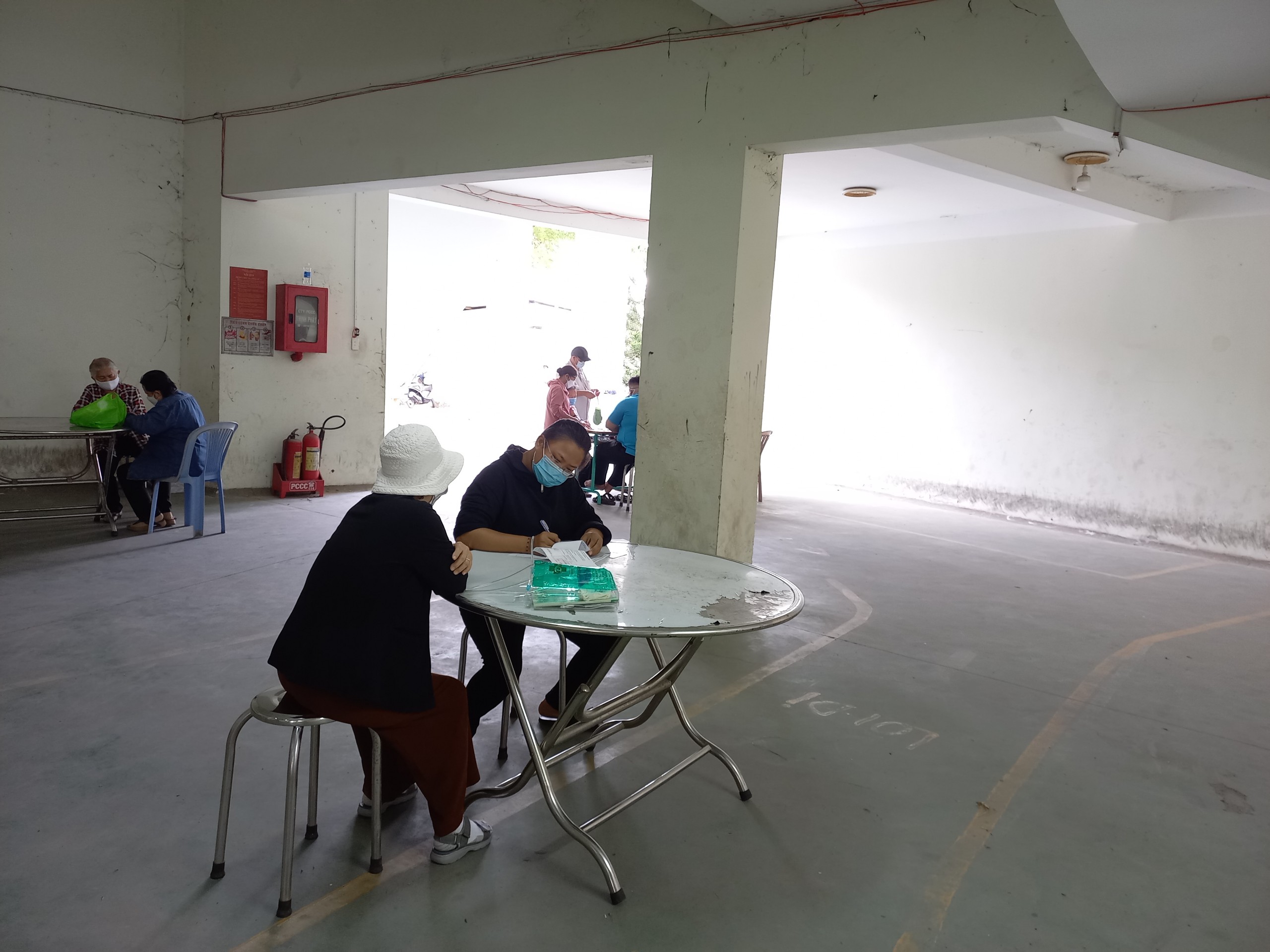 Hình 2 - Người dân đến bàn hướng dẫn và tiếp nhận để đăng ký tiêm