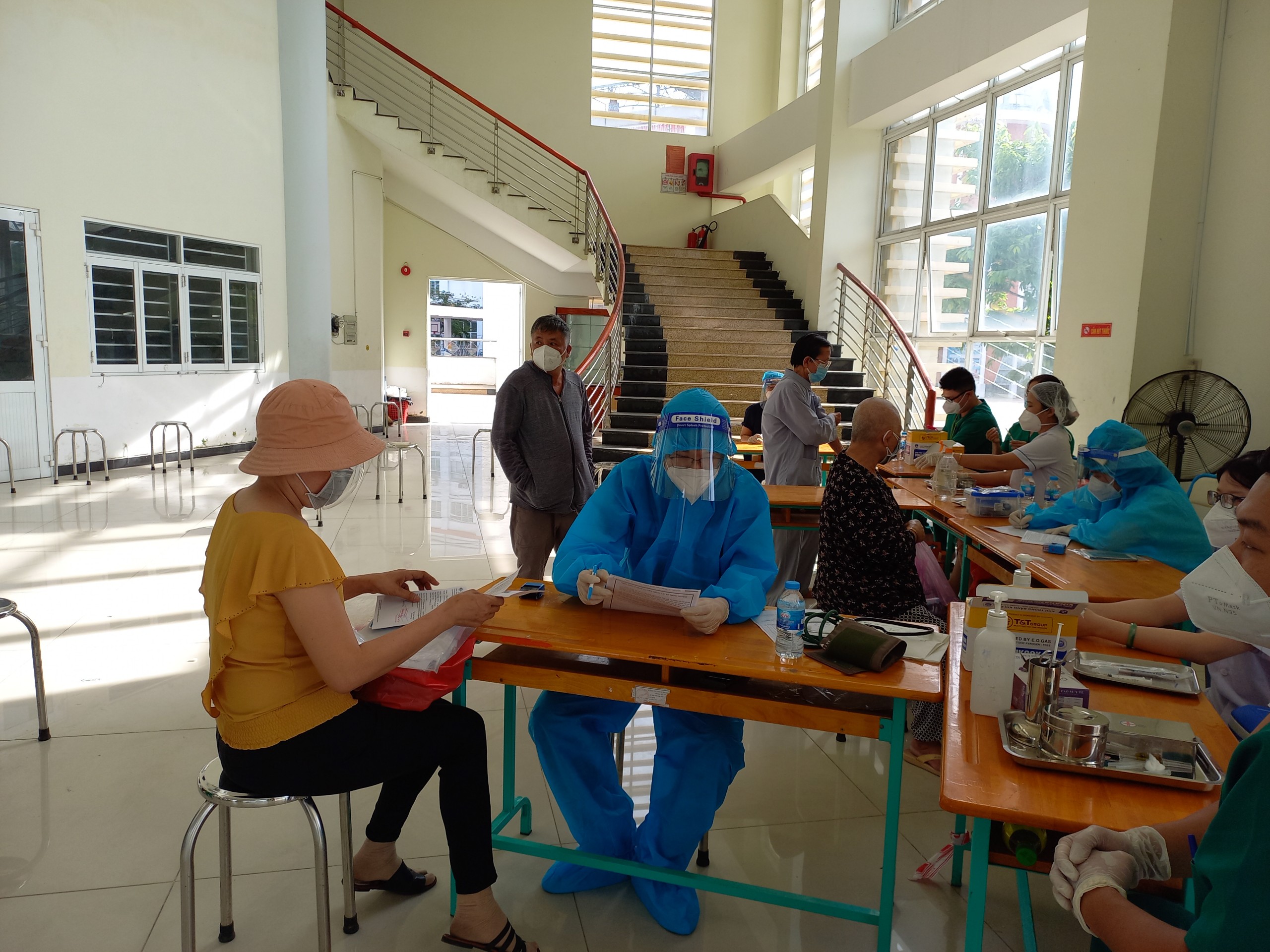 Công tác tiêm chủng diễn ra thuận lợi, đảm bảo quy trình một chiều, người dân được bác sĩ thăm khám, tư vấn, thông tin loại thuốc sẽ được tiêm và hướng dẫn về các phản ứng sau tiêm có thể xảy ra.