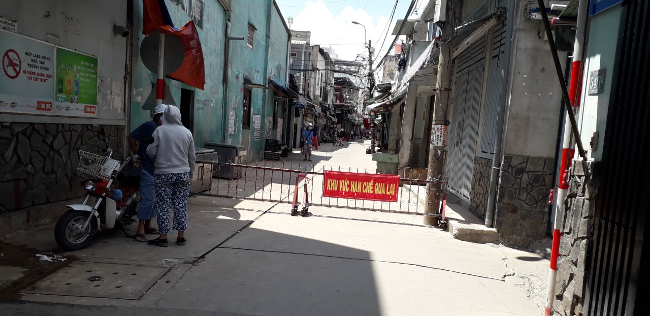 Đường phố và các khu vực thường tập trung đông người tại huyện Hóc Môn cũng được lập các cổng rào hạn chế đi lại, hàng quán tạm dừng hoạt động