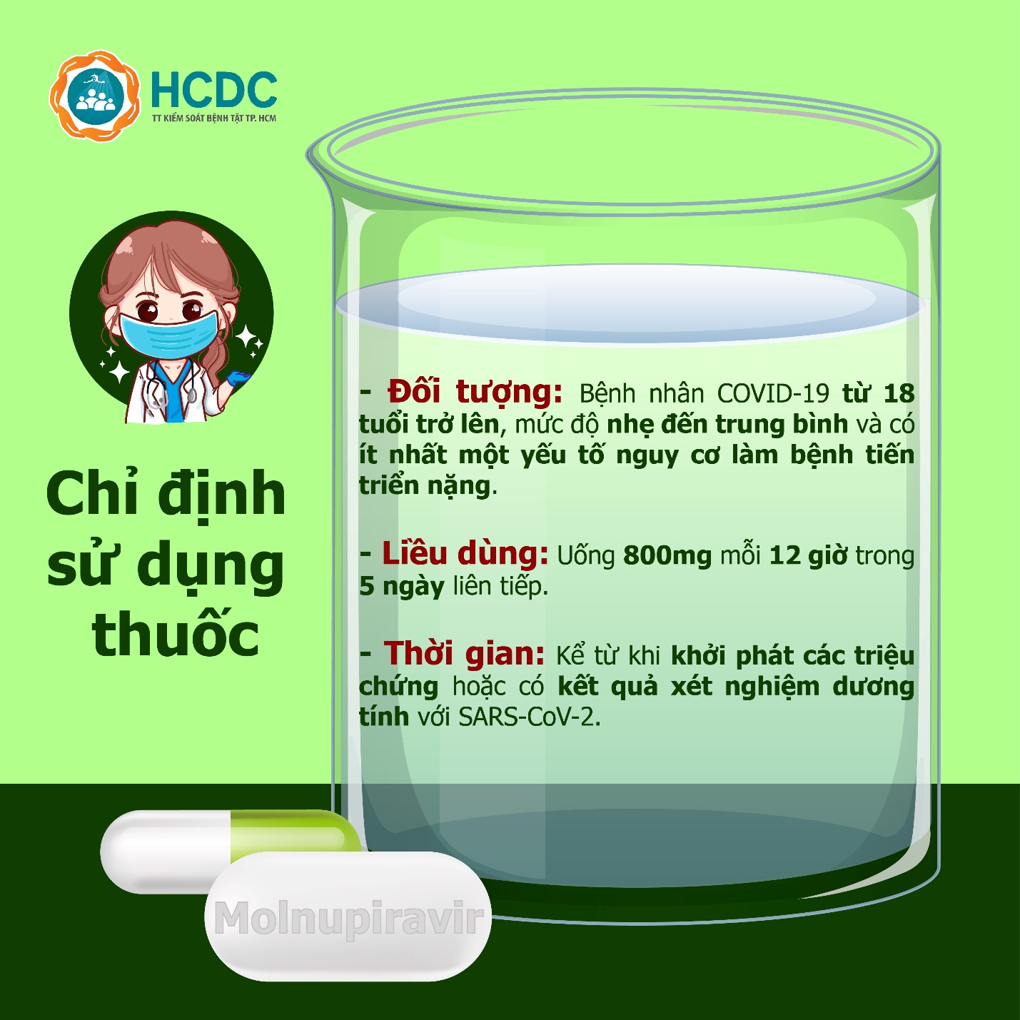 * Lưu ý: Sử dụng Molnupiravir cần phải có sự thăm khám, kê đơn và hướng dẫn của bác sĩ, nhân viên y tế.