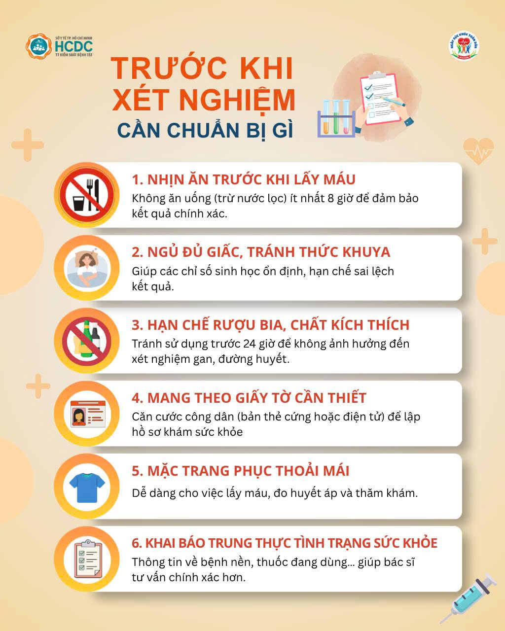 Hãy chuẩn bị thật tốt trước khi đi xét nghiệm và sắp xếp thời gian tham gia đúng lịch – vì sức khỏe của bạn xứng đáng được quan tâm từ hôm nay