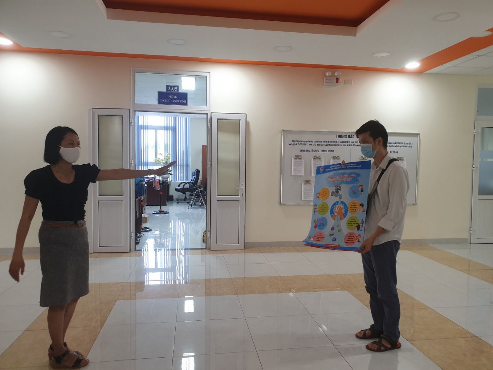 Về hạn chế nguy cơ tiếp xúc với dịch hô hấp của người khác: luôn mang khẩu trang trong khi làm việc. Hạn chế nói chuyện, trao đổi, tiếp xúc khi không cần thiết. Nếu có tiếp xúc thì duy trì khoảng cách 2m. Không tập trung đông người trong giờ giải lao.