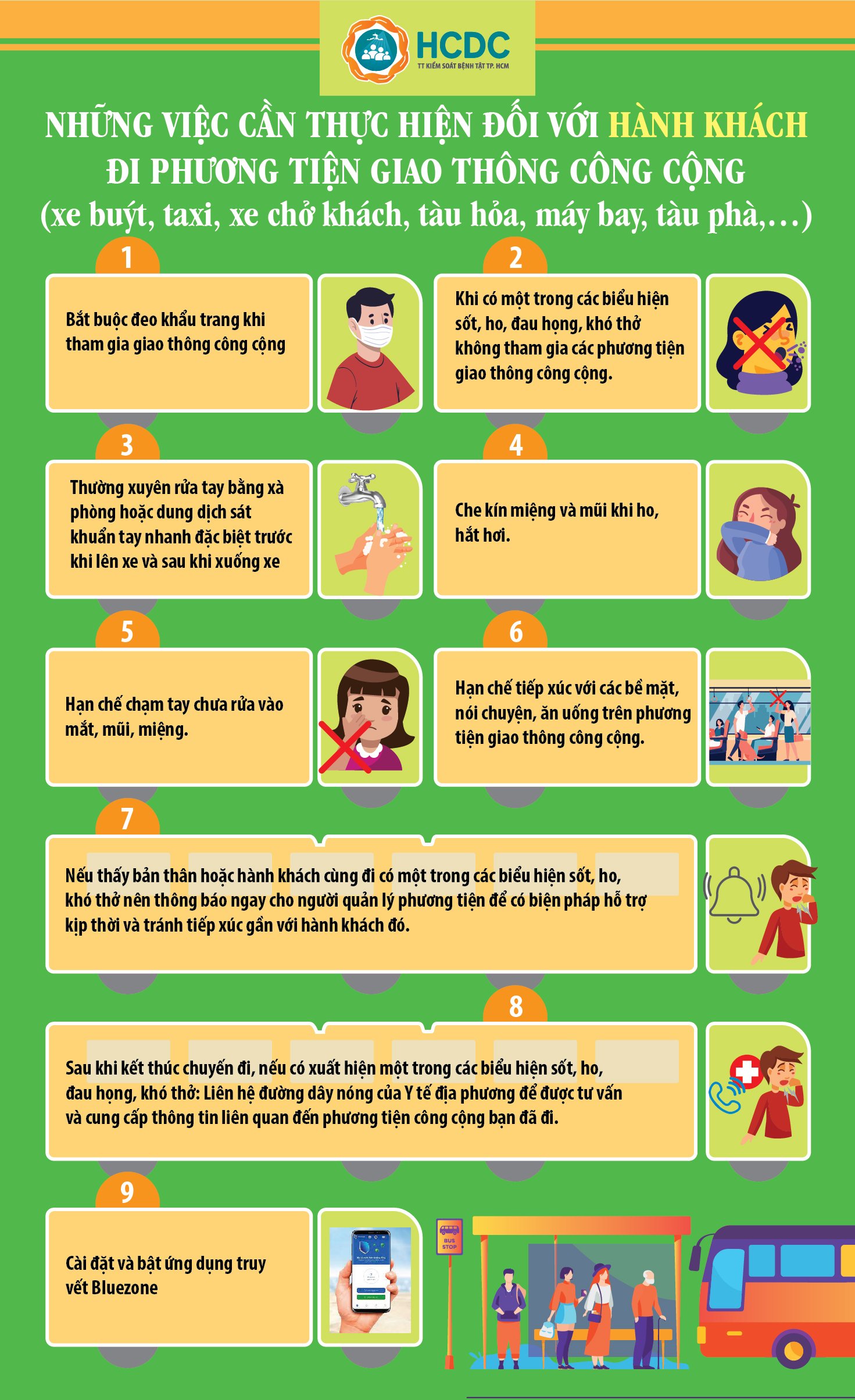 KHUYẾN CÁO PHÒNG, CHỐNG DỊCH COVID-19 ĐỐI VỚI NGƯỜI ĐIỂU KHIỂN PHƯƠNG TIỆN GIAO THÔNG CÔNG CỘNG, NGƯỜI PHỤC VỤ VÀ HÀNH KHÁCH