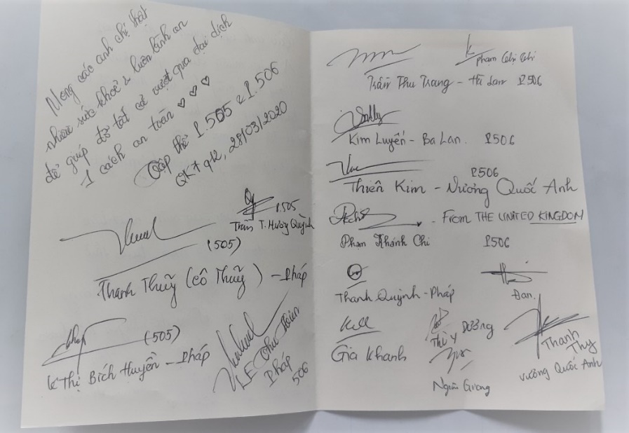 - Tấm thiệp của các bạn trong khu cách ly trường Quân sự Quân khu 7