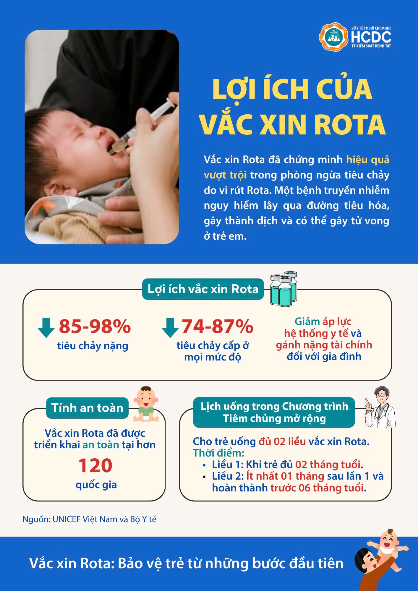 Bạn có biết vắc xin Rota giúp giảm đến 98% nguy cơ tiêu chảy nặng và đã được triển khai an toàn tại hơn 120 quốc gia? Cùng tìm hiểu về lợi ích của vắc xin Rota sau đây nhé!