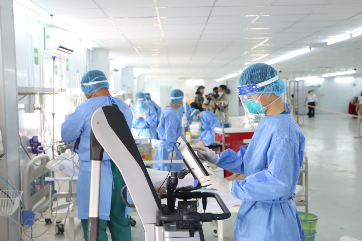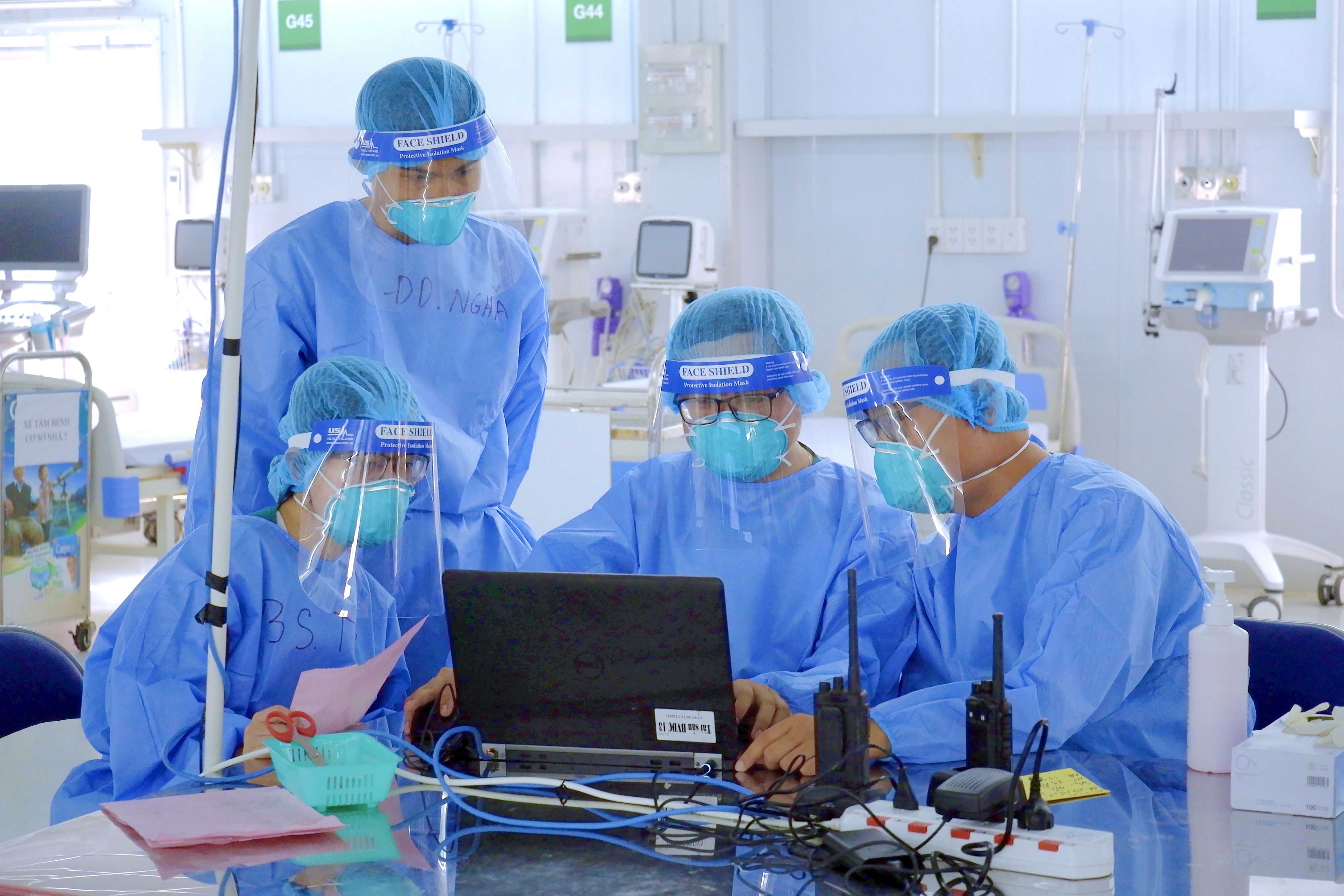 Nhân viên y tế chăm sóc và theo dõi sức khỏe người bệnh COVID-19