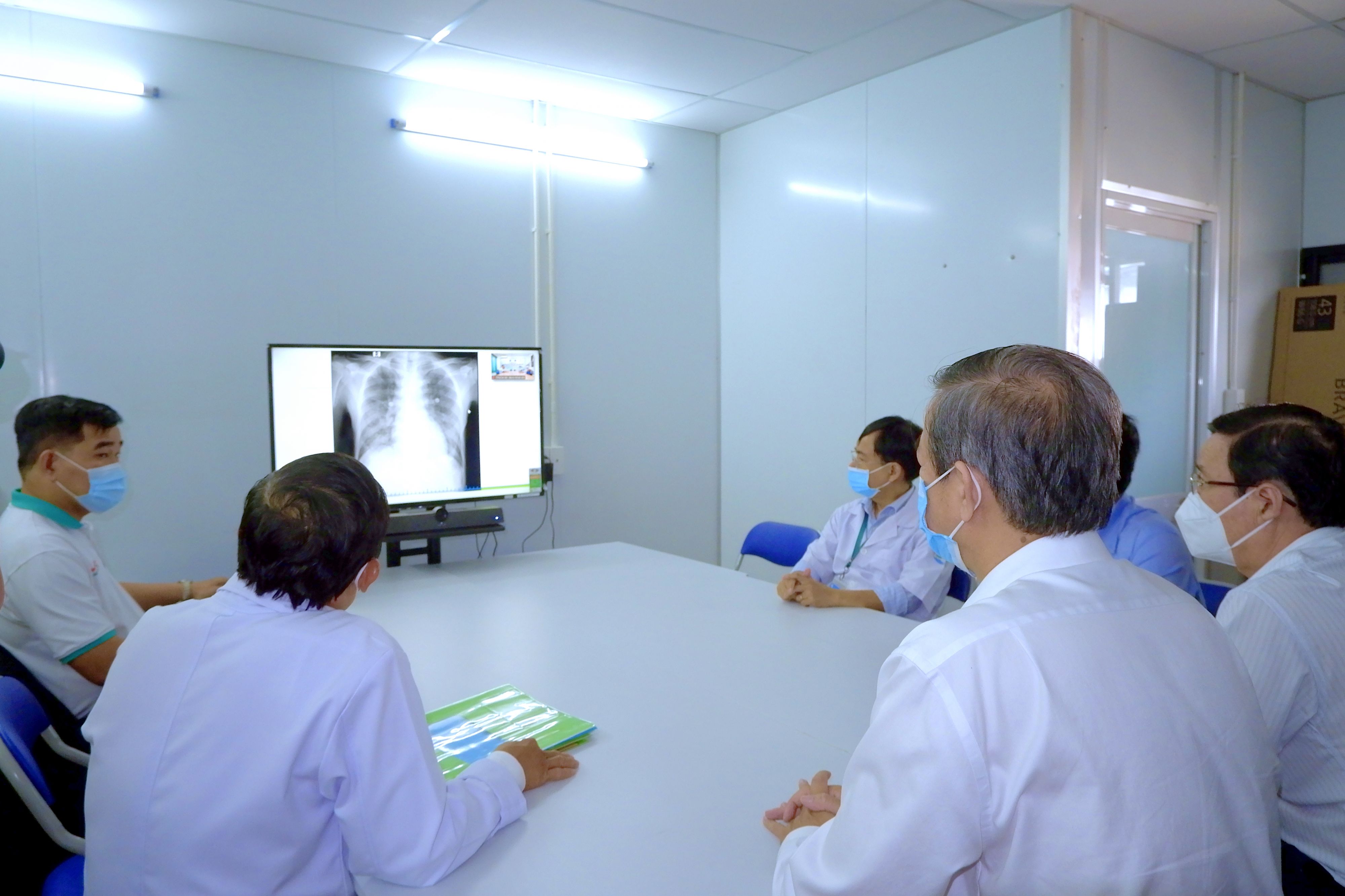 Sau khi thăm khám, nắm thông tin tình trạng của người bệnh COVID-19, BV dã chiến số 13 khẩn trương tổ chức họp hội chẩn trực tuyến với BV Bệnh Nhiệt đới