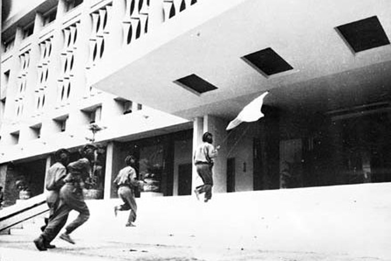 Tổng thống Việt Nam Cộng hòa, Đại tướng Dương Văn Minh cùng toàn bộ nội các bị bắt và phải tuyên bố đầu hàng không điều kiện trước Quân giải phóng (ảnh tư liệu)