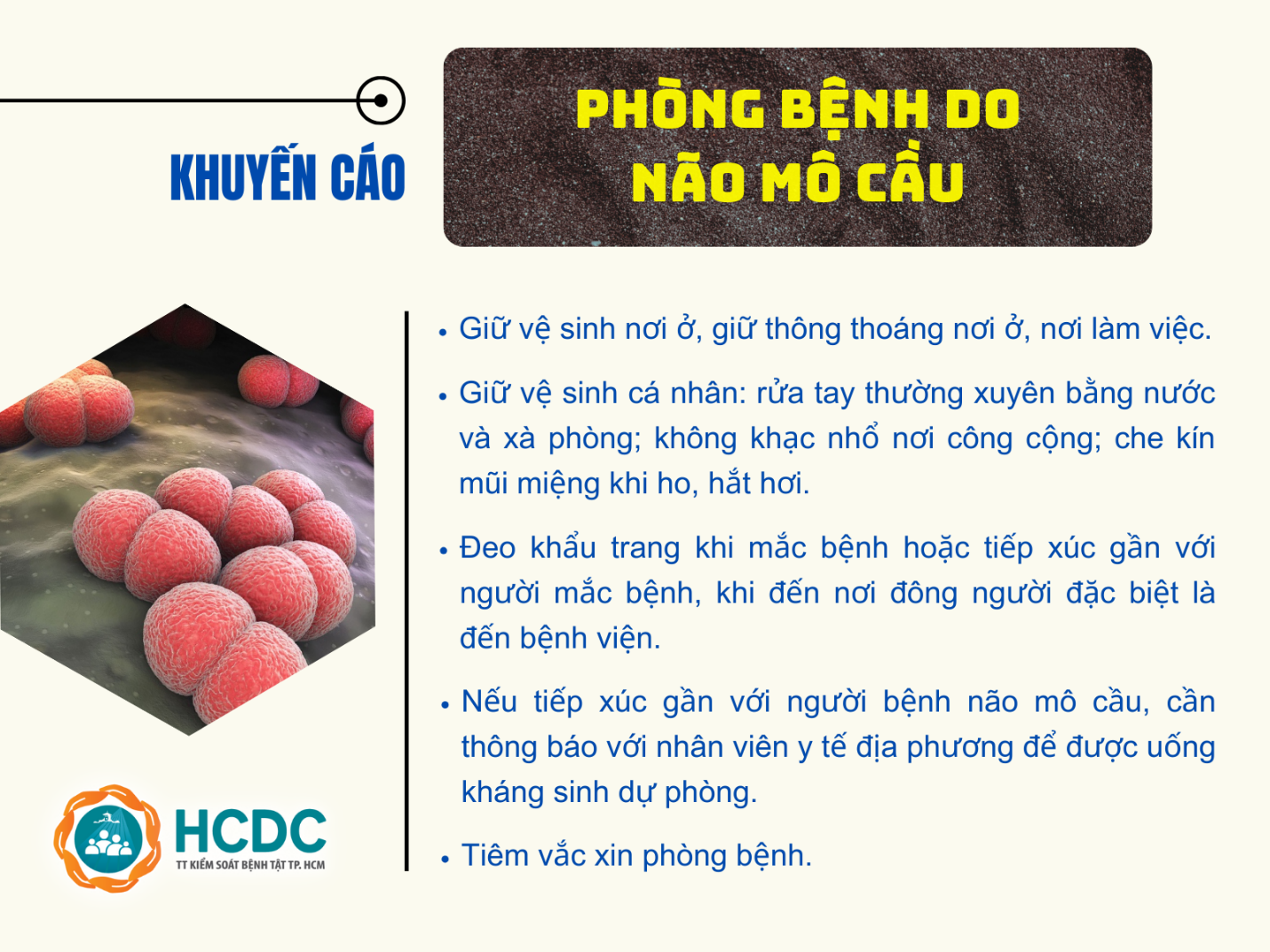 Não mô cầu được đánh giá có nguy cơ cao sẽ xuất hiện thêm các ca mắc bệnh tại khu vực phía Nam. Bệnh lây qua giọt bắn nên phòng ngừa bệnh quan trọng bằng các biện pháp vệ sinh cá nhân, vệ sinh môi trường.