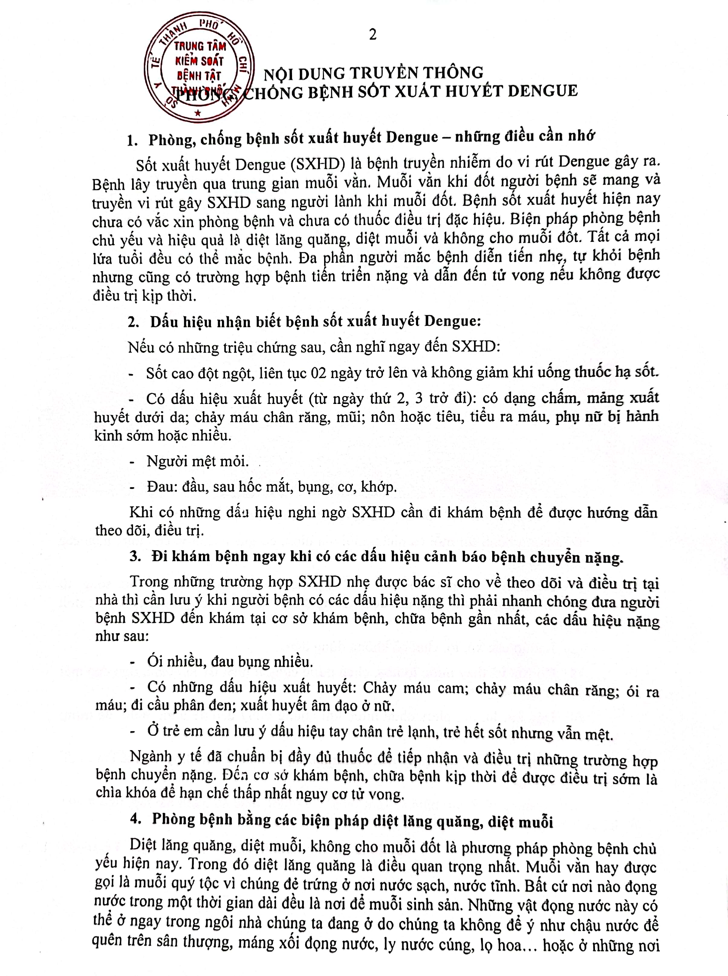 NỘI DUNG TRUYỀN THÔNG PHÒNG, CHỐNG BỆNH SỐT XUẤT HUYẾT DENGUE