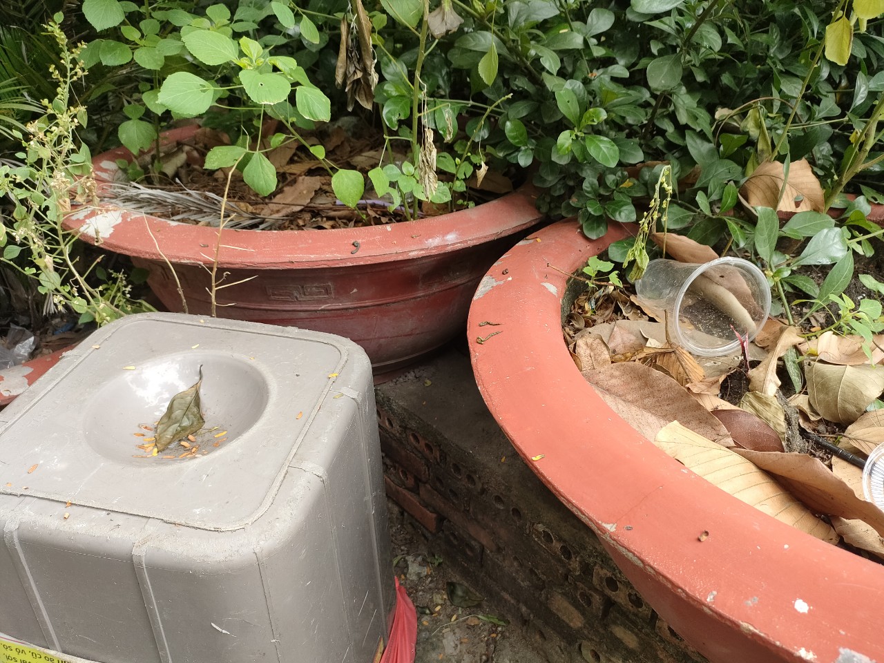 Ảnh: Chỗ trũng đáy thùng rác, ly nhựa, … tại trường học cũng là vật chứa đọng nước