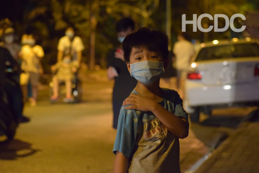 Bên cạnh sự ủng hộ của người lớn, trẻ em tại điểm lấy mẫu cũng rất ngoan ngoãn và nghe lời các cô chú đội lấy mẫu