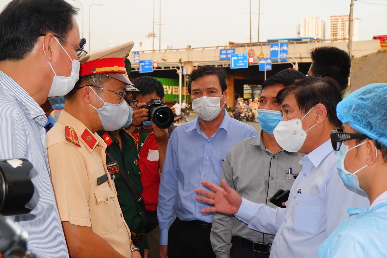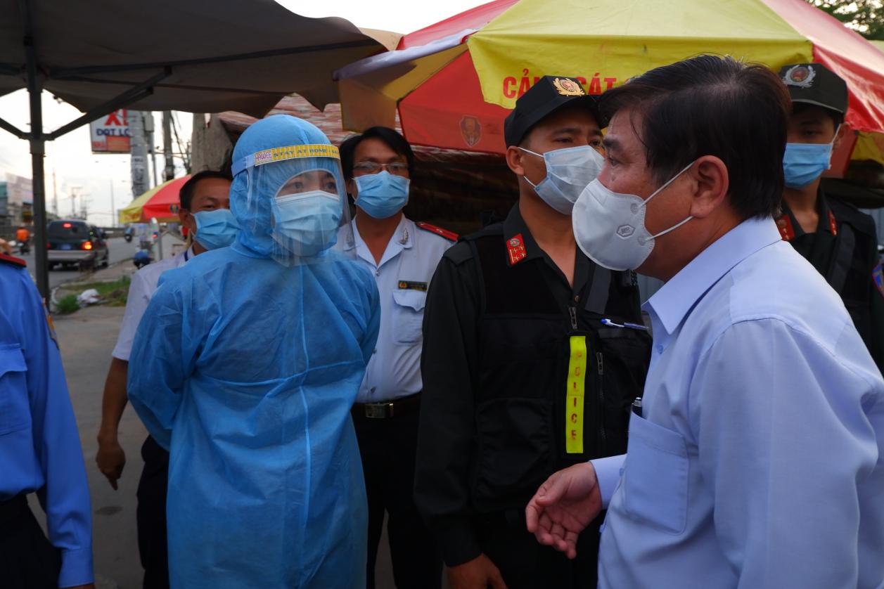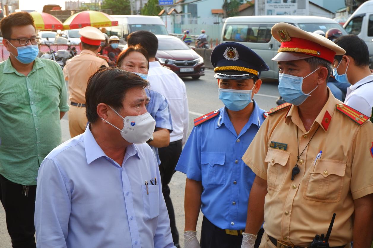 Ông Nguyễn Thành Phong, chủ tịch UBND TP.HCM, đến thăm các chốt kiểm dịch tại các cửa ngõ TP