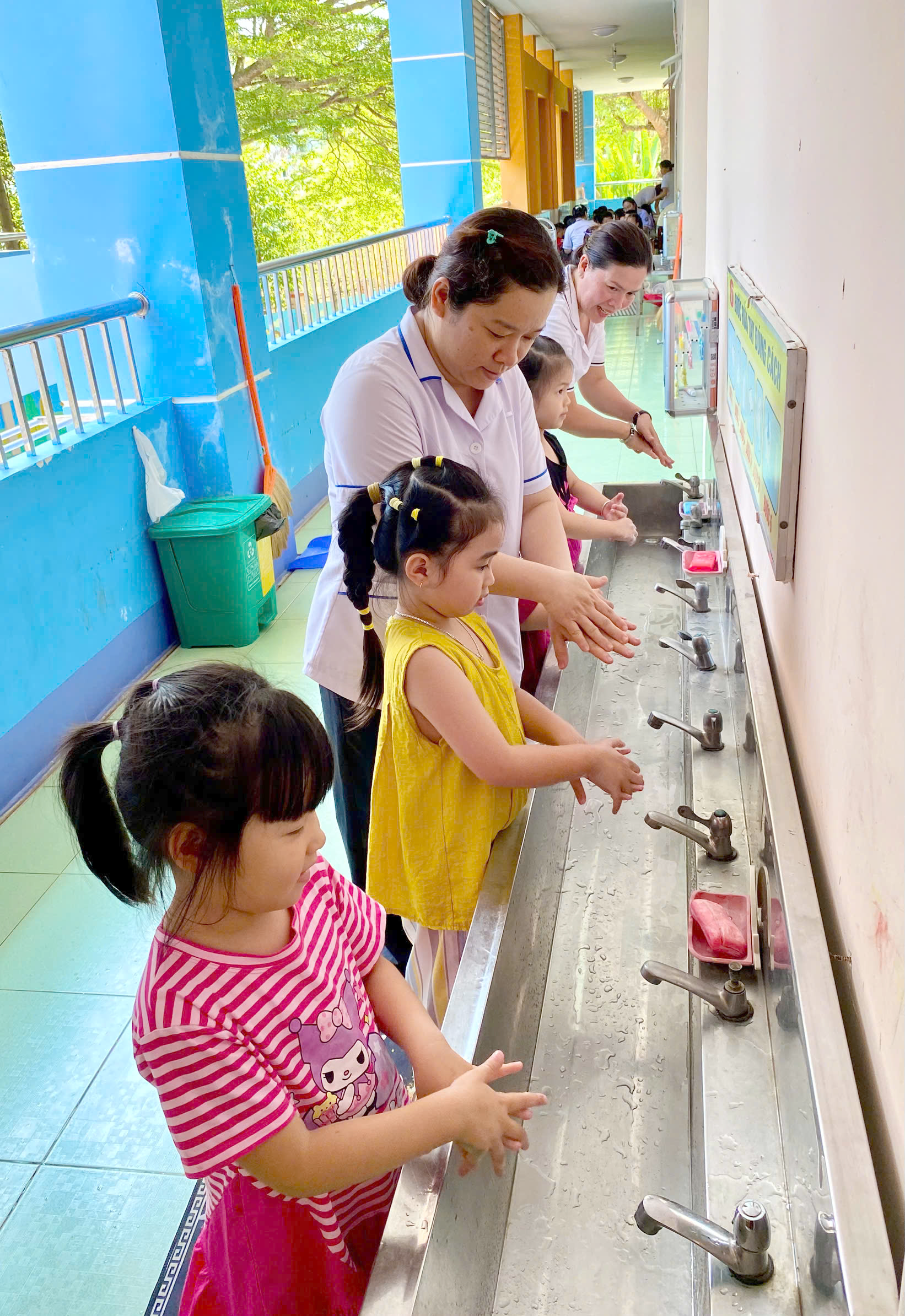 Tại các lớp có trẻ mắc bệnh, giáo viên thực hiện nghiêm túc việc theo dõi sức khỏe học sinh đầu giờ và báo cáo hằng ngày để Trạm Y tế kịp thời xử lý. Bên cạnh đó, các cơ sở giáo dục như trường Mầm non Họa Mi hay Long Tâm cũng tăng cường hướng dẫn trẻ rửa tay 6 bước bằng xà phòng. Công tác vệ sinh, khử khuẩn đồ chơi và dụng cụ học tập được duy trì thường xuyên nhằm đảm bảo môi trường học tập an toàn cho trẻ.