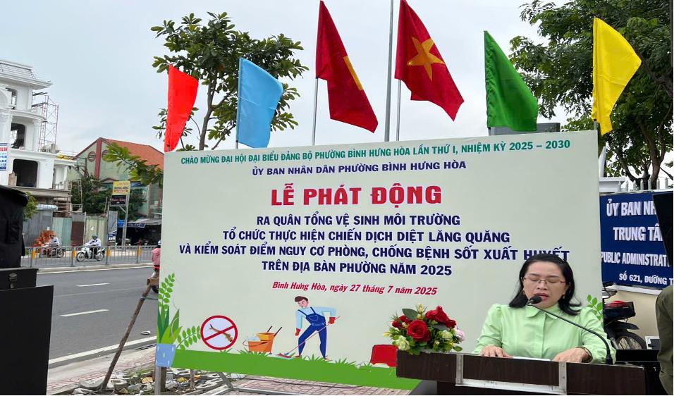 Sáng ngày 27/7/2025, tại Ủy ban nhân dân phường Bình Hưng Hòa, Trung tâm Y tế quận Bình Tân phối hợp cùng UBND phường, Trạm Y tế phường Bình Hưng Hòa và Trạm Y tế phường Bình Hưng Hòa A tổ chức Lễ phát động Chiến dịch phòng, chống sốt xuất huyết năm 2025, với các hoạt động trọng tâm như tổng vệ sinh môi trường, diệt lăng quăng và kiểm soát điểm nguy cơ tại địa phương.