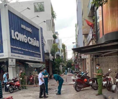 Ảnh: lực lượng công an và dân quân thực hiện nhiệm vụ tại khu vực cách ly các hộ dân tuyến hẻm 207 đường 3/2 phường 11 Quận 10