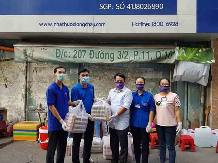 Ảnh: Đoàn thanh niên hỗ trợ cung cấp thực phẩm tại khu vực cách ly các hộ dân tuyến hẻm 207 đường 3/2 phường 11 Quận 10