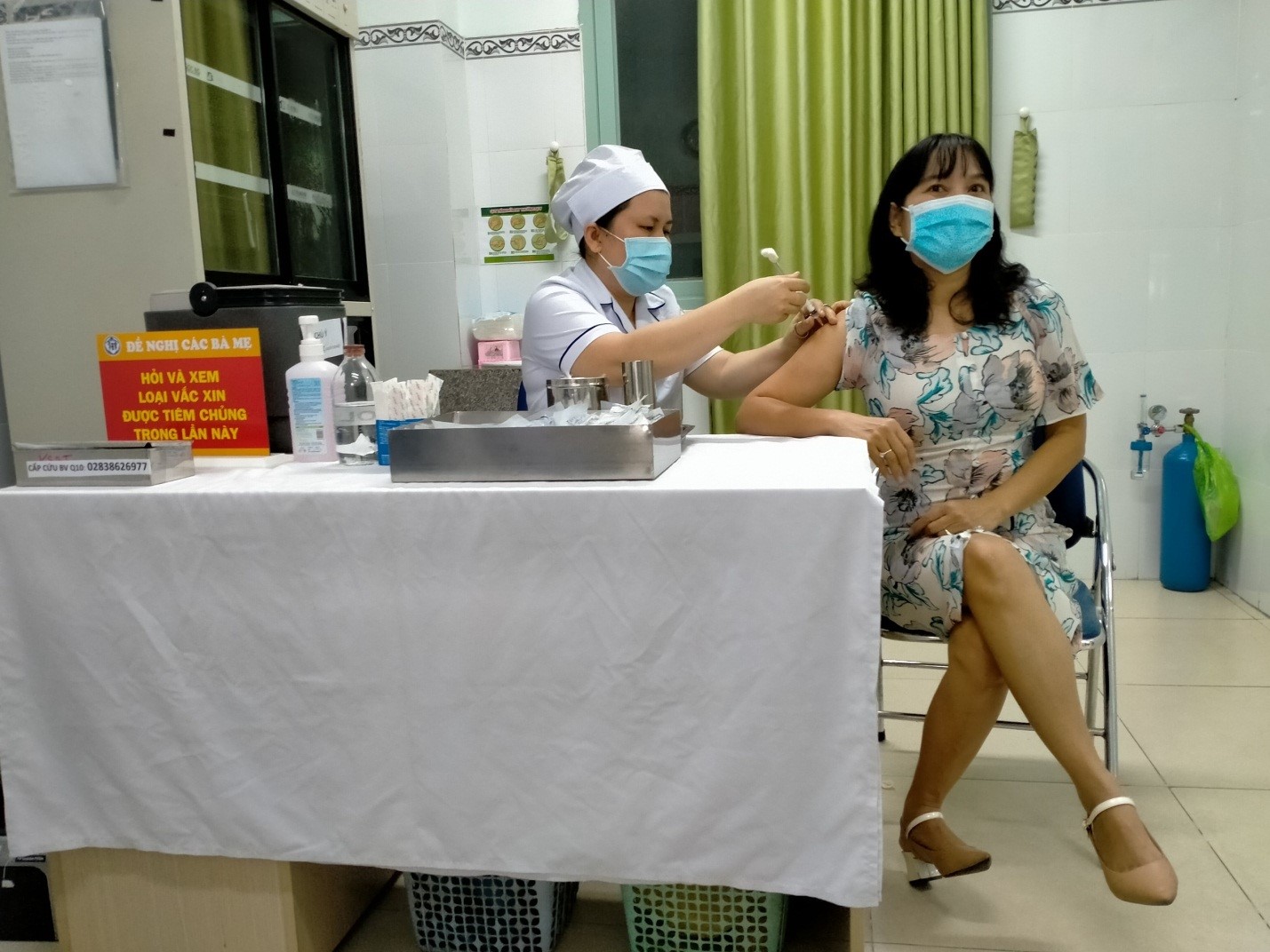 Tiêm vắc xin phòng COVID-19 cho Ths. Bs Đặng Thị Hiền Thục - Phó Giám đốc Trung tâm Y tế Quận 10.