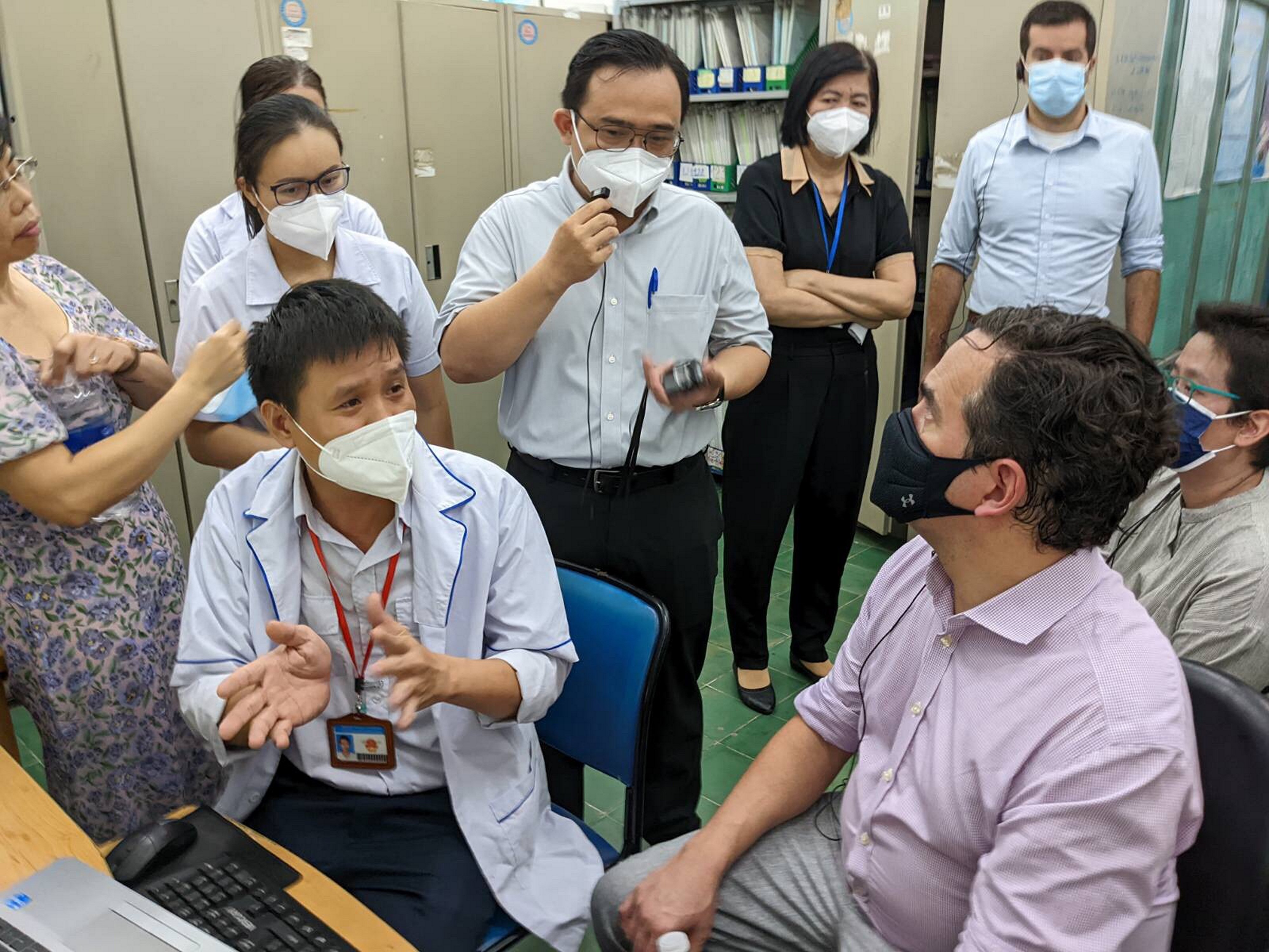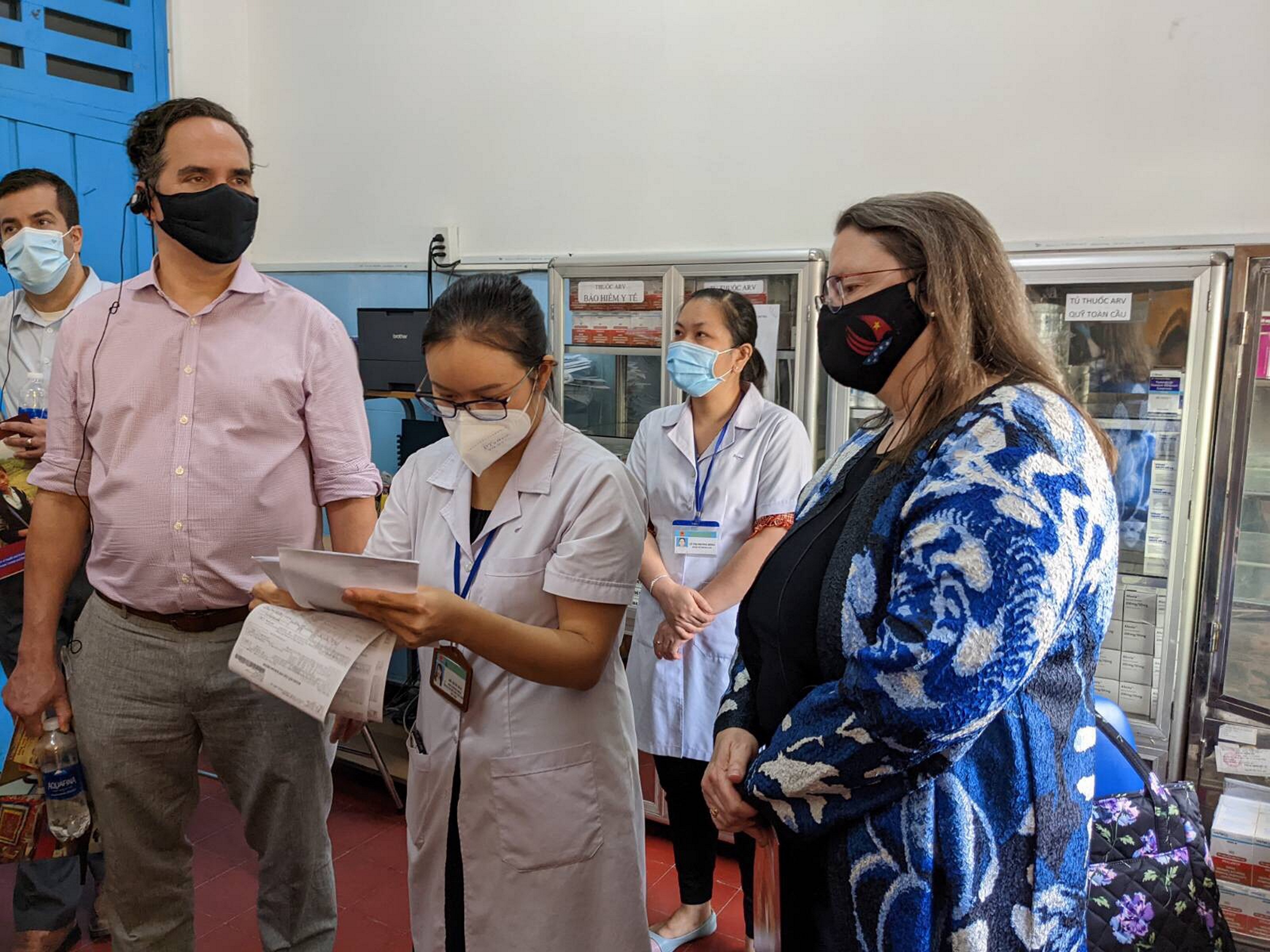 Sáng ngày 23/6/2022 vừa qua, Bà Marie C. Damour - Tổng Lãnh sự Hoa Kỳ tại Thành phố Hồ Chí Minh cùng với đoàn lãnh đạo cấp cao của Chương trình viện trợ khẩn cấp của Tổng thống Hoa Kỳ về phòng, chống AIDS (PEPFAR), Giám đốc CDC Hoa Kỳ tại Việt Nam và Giám đốc Chương trình Y tế của USAID đã đến thăm và làm việc tại Khoa tham vấn và hỗ trợ cộng đồng (TVHTCĐ) Quận 4. Tiếp đoàn có BS. Văn Hùng – Trưởng Khoa Phòng chống HIV, HCDC và BS. Võ Thị Ngọc Thúy – Phó Giám đốc Trung tâm Y tế Quận 4 và các thành viên của Khoa TVHTCĐ.