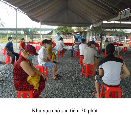 Quá trình tiêm vắc xin phòng COVID-19 tại chợ đầu mối Bình Điền được tổ chức theo quy trình một chiều gồm đầy đủ các khâu từ khai báo y tế, đo nhiệt độ, huyết áp, nhập thông tin đến khám sàng lọc, có nhân viên y tế hướng dẫn và theo dõi người được tiêm tại khu vực sau tiêm 30 phút để đảm bảo công tác tiêm được diễn ra an toàn.