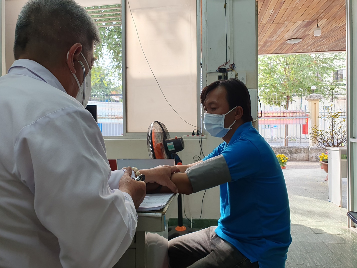 Bác sĩ khám sàng lọc trước khi tiêm cho người dân