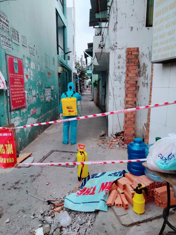 Phun xịt khử khuẩn tại nhà trường hợp nghi nhiễm và con hẻm trên đường Nguyễn Bặc