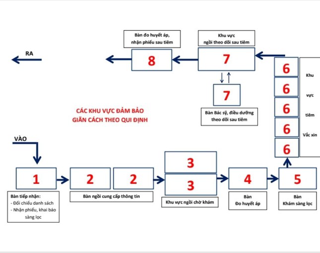 Theo BS.CK2. Nguyễn Thanh Trang – Giám đốc TTYT, quận Tân Bình sẽ bố trí 24 đội tiêm, mỗi điểm 6 đội tiêm (mỗi đội tiêm sẽ bao gồm: bàn khai báo y tế, bàn đối chiếu danh sách, bàn khám, bàn tiêm, bàn hướng dẫn sau tiêm khu vực theo dõi sau tiêm có kèm phòng sử dụng để cấp cứu, bàn nhập liệu...). Căn cứ số lượng người tiêm đã được UBND 15 Phường thông kê, TTYT sẽ phân phối đảm bảo mỗi bàn tiêm sẽ thực hiện dưới 100 người/ buổi.