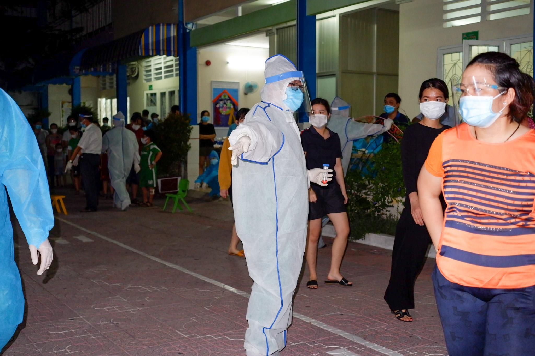 Dù số lượng lấy mẫu đông tại cộng đồng, lực lượng y tế vẫn đảm quy trình phòng dịch và an toàn khoảng cách