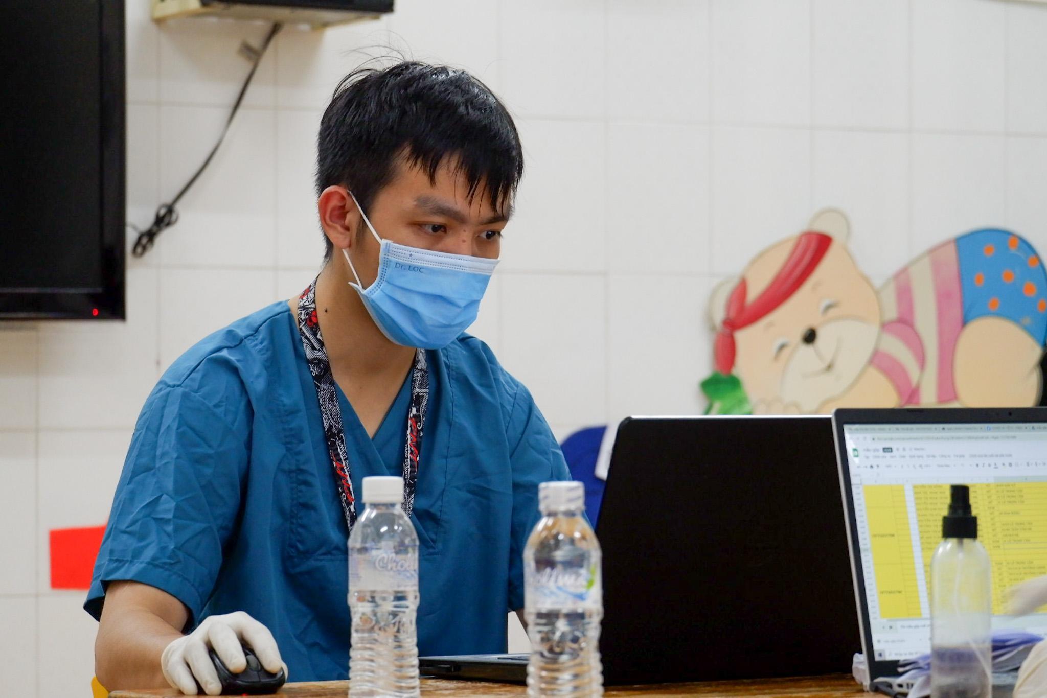 Đội ngũ nhập số liệu mẫu xét nghiệm được triển khai song song tại khu vực phòng riêng.