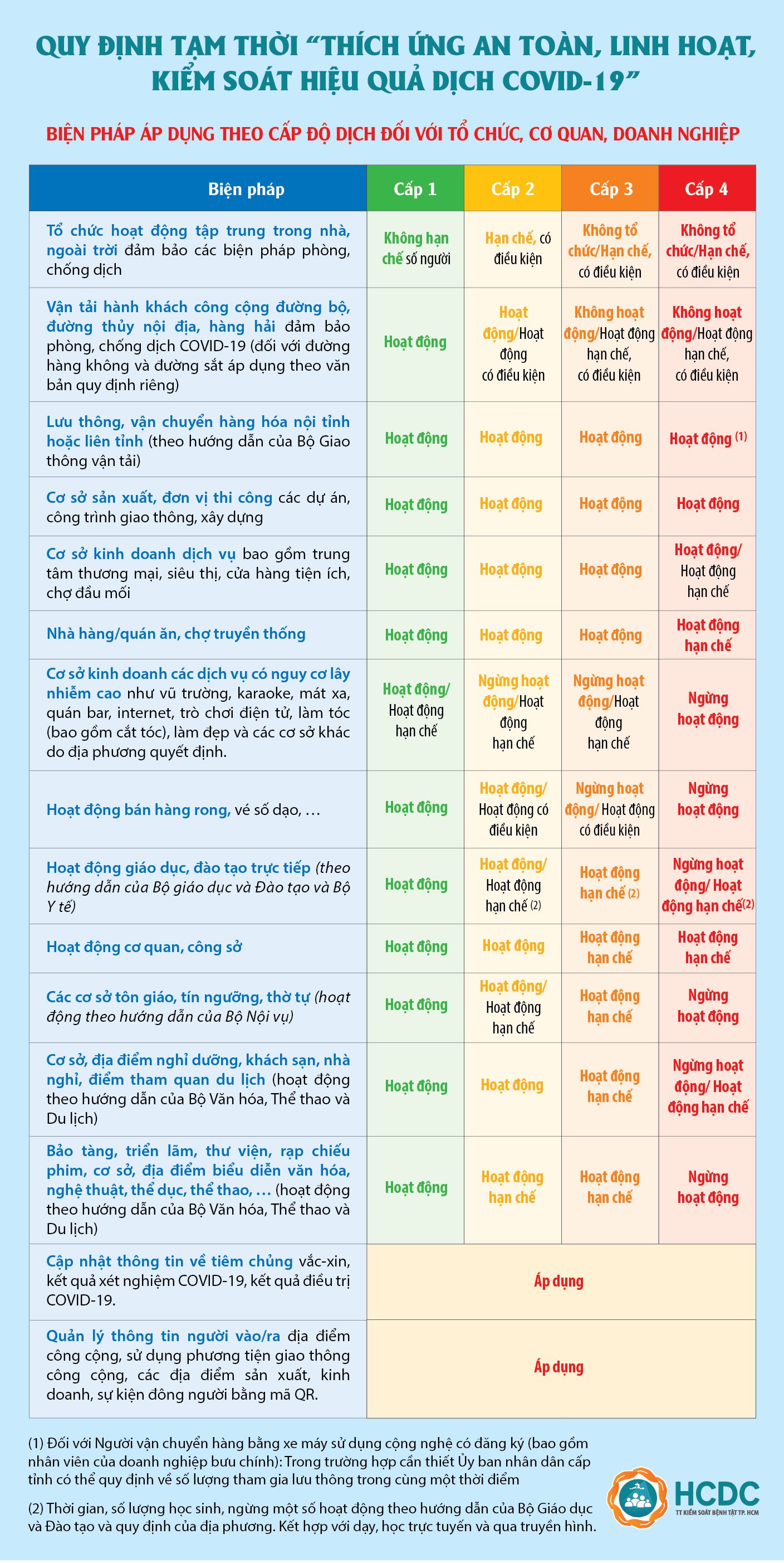 Theo Nghị quyết, mức độ dịch bệnh COVID-19 được phân thành 4 cấp gồm cấp 1 (nguy cơ thấp - bình thường mới) - màu xanh; cấp 2 (nguy cơ trung bình) - màu vàng; cấp 3 (nguy cơ cao) - màu cam; cấp 4 (nguy cơ rất cao) - màu đỏ..jpg)