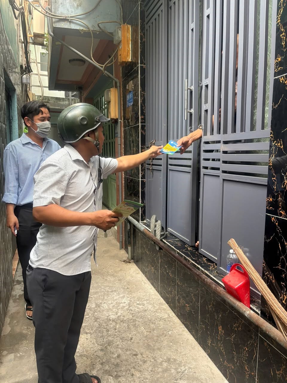 Ảnh: Phát tờ rơi truyền thông phòng, chống sốt xuất huyết tại phường Tân Thuận.