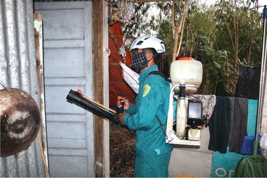Lực lượng chức năng triển khai phun hóa chất, chủ động kiểm soát và ngăn chặn sự lây lan của muỗi truyền bệnh Sốt xuất huyết và Chikungunya.