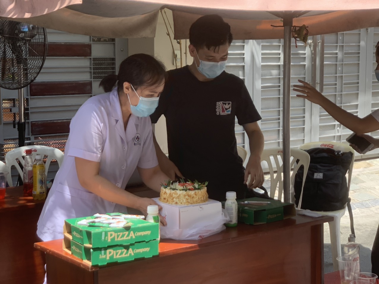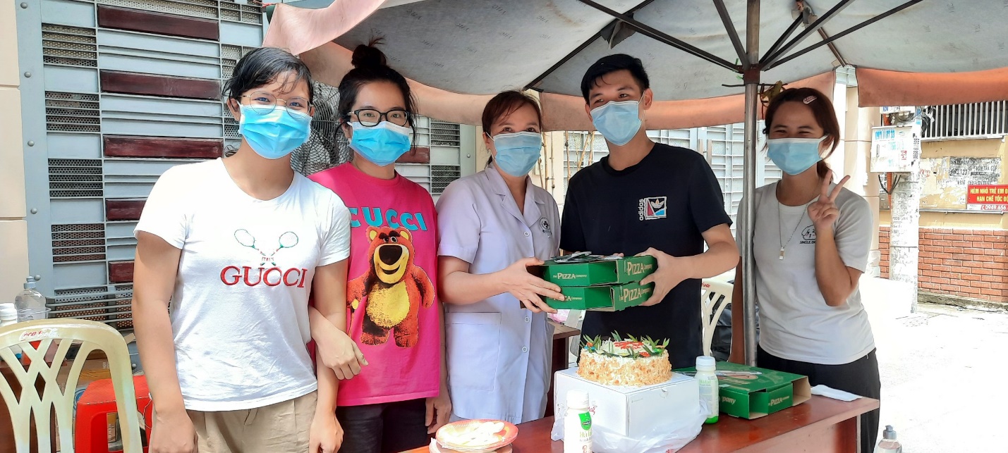12 giờ trưa, sau khi đã hoàn thành xong các công tác lấy mẫu cho người dân trong khu vực này, mọi người đang nghỉ giải lao và cùng nhau ăn cơm trưa thì các bạn trẻ sinh viên trong đội hỗ trợ hát vang bài “Happy birthday” cho một chàng sinh viên tại đó. Thấy vậy, các anh chị thuộc Trung tâm Y tế Quận 3 điều tra ngay người đang được chúc mừng sinh nhật và biết được hôm nay là sinh nhật Hữu Đạt.