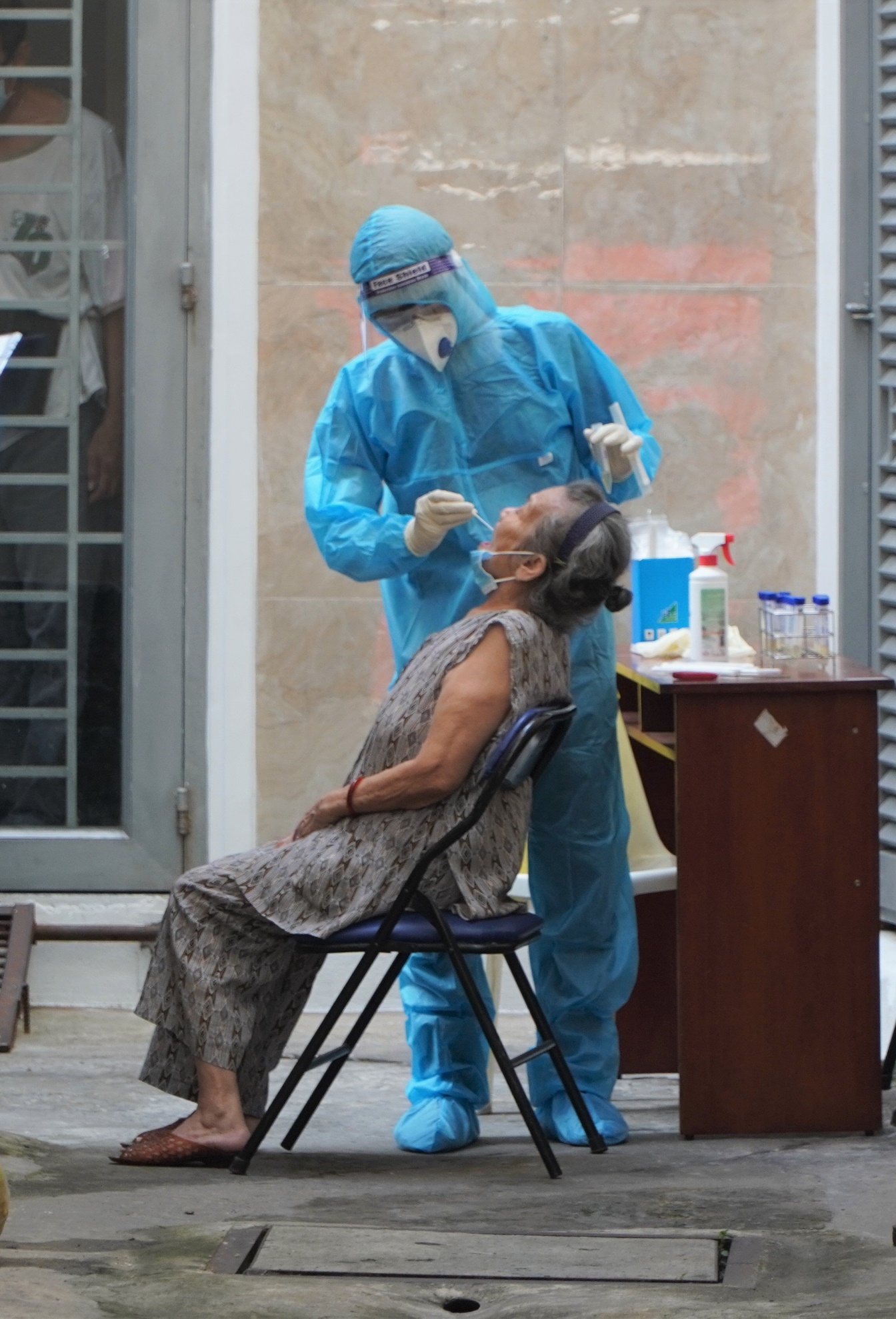 Chàng trai ấy là một sinh viên đã đăng ký tình nguyện chống dịch cùng Trung tâm Kiểm soát bệnh tật TP.HCM (HCDC) và được phân công hỗ trợ công tác lấy mẫu trên địa bàn Quận 3.