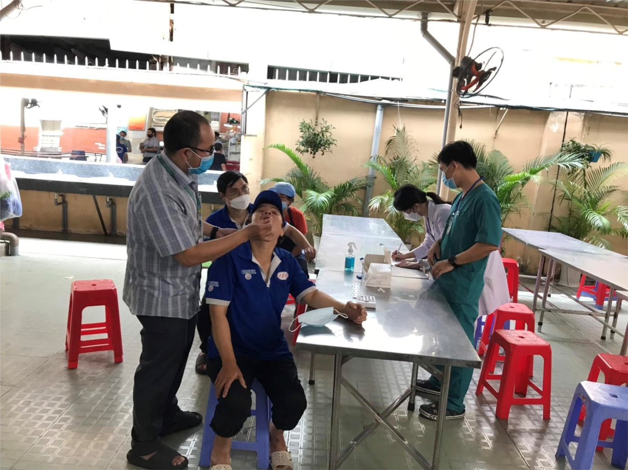 Tổ công tác bao gồm các chuyên gia về Nhi khoa, HCDC đến trường PTCS Lê Văn Tám (Bình Thạnh) trực tiếp thăm khám, xét nghiệm cho các cháu học sinh và nhân viên phục vụ bữa ăn của nhà trường (27/02/2023)