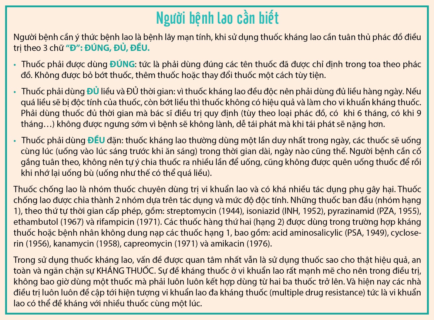 - Trong thời gian dùng thuốc điều trị lao, người bệnh không được uống rượu, bia và hạn chế hoặc tránh sử dụng thêm các thuốc có hại cho gan và thận, vì hầu hết các thuốc trị lao đều độc cho gan và được thải qua thận.