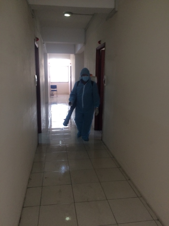 Trung tâm y tế quận Tân Bình tổ chức phun khử khuẩn tại 2 địa điểm cách ly của Vietnam Airlines