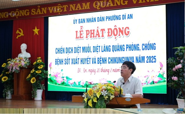 Đại diện lãnh đạo phường Dĩ An cho biết, trong 7 tháng đầu năm 2025, phường ghi nhận 325 ca mắc sốt xuất huyết và 164 ca tay chân miệng, với các ca bệnh phân bố đều tại 19 khu phố. Đặc biệt, số ổ dịch đang phát sinh mạnh trong hai tuần gần đây tại các khu phố Thống Nhất 1, Bình Đường 1, 2 và 3. Mặc dù phường mới được sáp nhập và đi vào hoạt động gần 2 tháng, nhưng chính quyền địa phương đã tích cực quan tâm đến sức khỏe người dân và ngành Y tế cũng đã khẩn trương điều tra, giám sát và xử lý ổ dịch. Tại buổi lễ phát động, thay mặt chính quyền địa phương, ông kêu gọi toàn thể các cấp lãnh đạo, ban, ngành, đoàn thể và đặc biệt mỗi người dân cùng ra quân, nâng cao ý thức và hành động trong công tác diệt muỗi, diệt lăng quăng để phòng bệnh từ gốc.