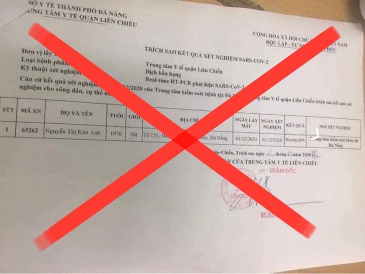 Trước những xôn xao về thông tin Đà Nẵng có trường hợp có kết quả xét nghiệm dương tính với SARS -CoV -2, Trung tâm y tế quận Liên Chiểu Đà Nẵng cho biết, đây là thông tin giả và đơn vị đã báo cáo việc này lên CA Thành phố Đà Nẵng để vào cuộc truy tìm, xử lý các cá nhân tung văn bản này lên mạng.
