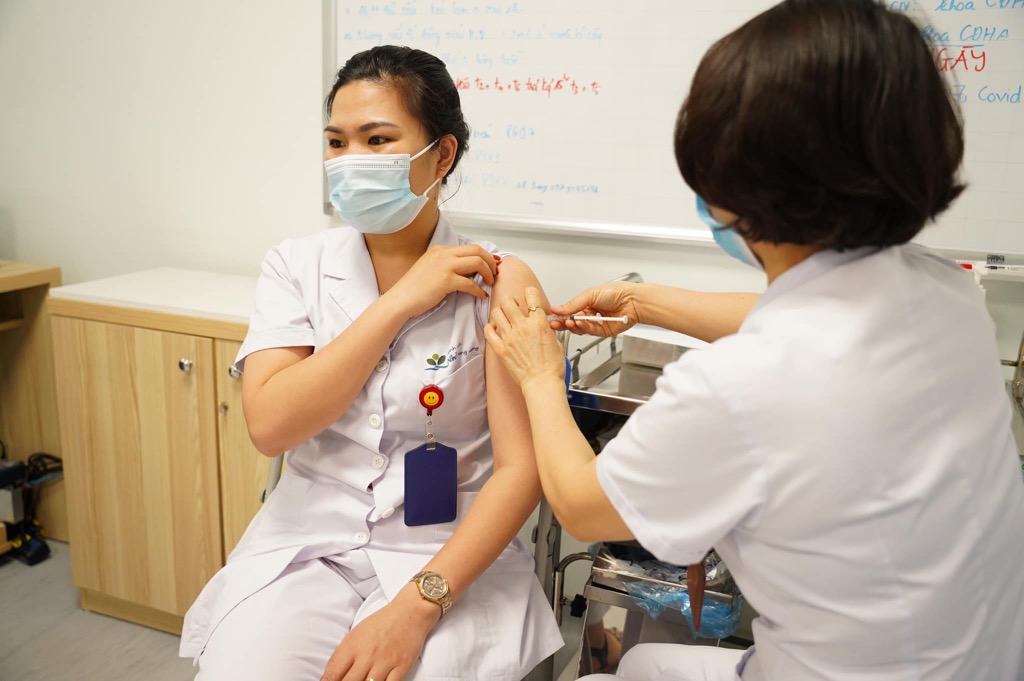 Ảnh minh hoạ: Cán bộ, nhân viên y tế tuyến đầu chống dịch được tiêm vắc xin COVID-19