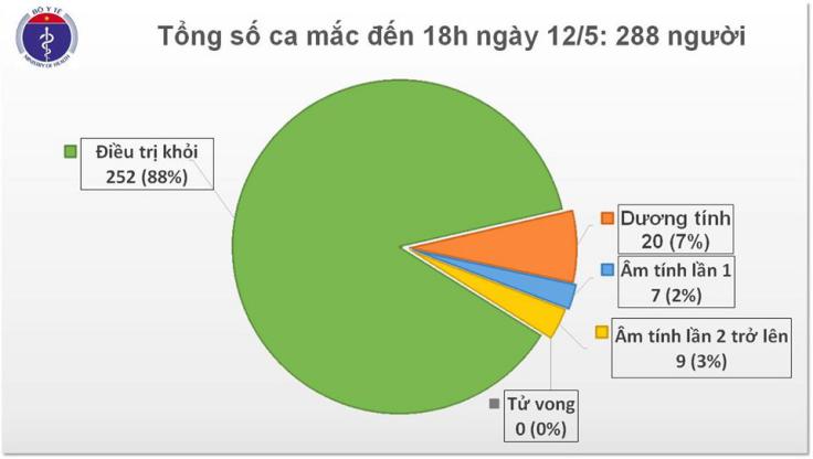 Bản tin lúc 18h00 ngày 12/5 của Ban Chỉ đạo Quốc gia Phòng chống dịch COVID-19 cho biết, đến chiều nay đã tròn 26 ngày Việt Nam không có ca mắc trong cộng đồng. Trong ngày có thêm 3 bệnh nhân được công bố khỏi bệnh, nâng số ca khỏi tại Việt Nam lên 252 ca.