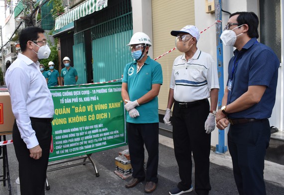 Chủ nhiệm Ủy ban Kiểm tra Thành ủy TPHCM Dương Ngọc Hải thăm chốt kiểm soát "vùng xanh" ở quận Tân Phú