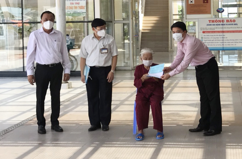 Năm người điều trị ở Bệnh viện Đa khoa Trung ương Quảng Nam sáng 12/9 được tuyên bố khỏi Covid-19, trong đó có cụ bà 100 tuổi.