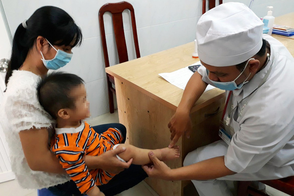 Một bệnh nhi bị bệnh tay chân miệng đến khám và điều trị tại Bệnh viện Nhi đồng Đồng Nai - Ảnh: tuoitre.vn
