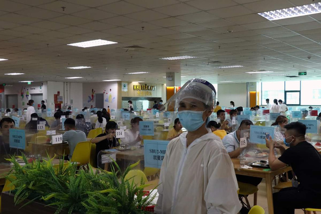 Công nhân công ty Goertek (Khu công nghiệp Quế Võ, Bắc Ninh) trong giờ ăn trưa.
