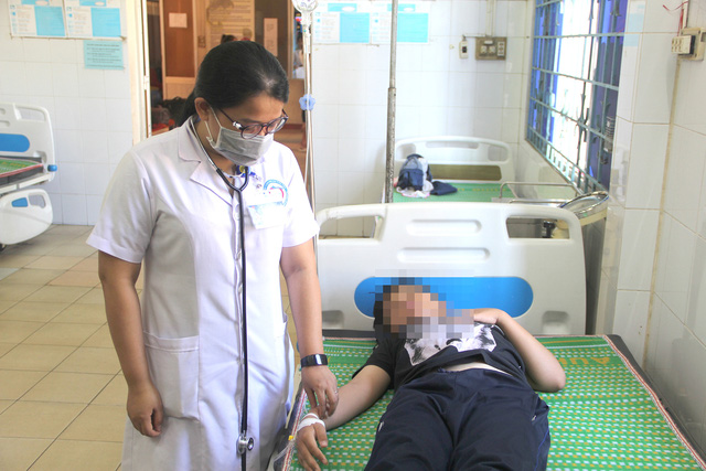 Điều trị bệnh nhân mắc sốt xuất huyết tại Bệnh viện Sản - nhi Phú Yên - Ảnh: THI TRUNG