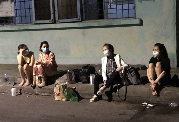 Các cô gái ngồi chờ làm thủ tục lấy lời khai lúc 2h sáng 20-4 tại công an phường An Thới