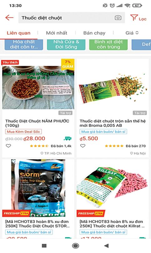 Ảnh: Thuốc diệt chuột là sản phẩm dễ dàng mua được tại nhiều cửa hàng trong đó có các trang thương mại điện tử