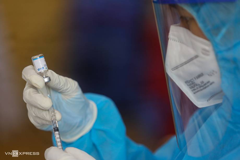 Nhân viên y tế chuẩn bị liều tiêm vaccine Covid-19 tại TP HCM